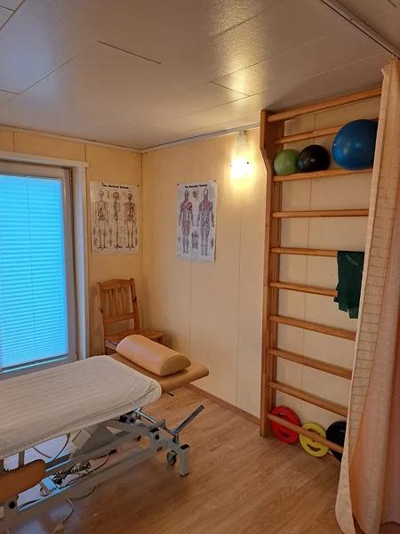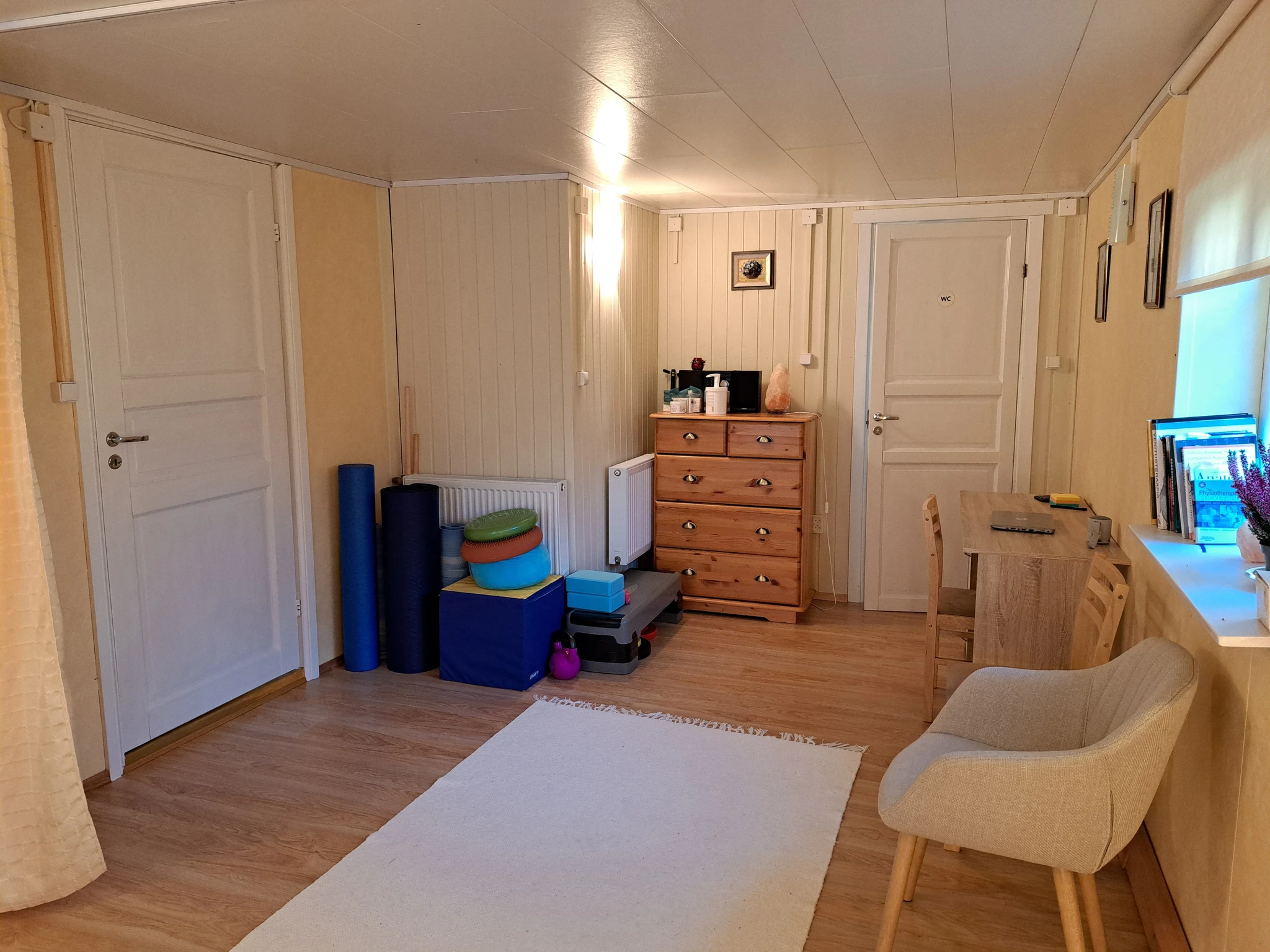 - teraapiaruum (18 m²) koos reguleeritava massaažilaua, massaažitarvikute, varbseina, erinevate võimlemisvahendite, võimlemismattide, kirjutuslaua, toolide ja muusikakeskuse ning bluetooth kõlariga,